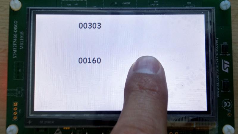 To sense touch we need to call routine called BSP_TS_GetState(&TS_State); to get touch data. When I tried just this routine to check for touch I got over 100 touches at one fingertouch, so I needed to figure something out. After reading a lot of documentation I saw that there is a variable inside TS_Touch called touchEventID and one of it’s values is TOUCH_EVENT_PRESS_DOWN and this is the one I used for “debouncing”.
